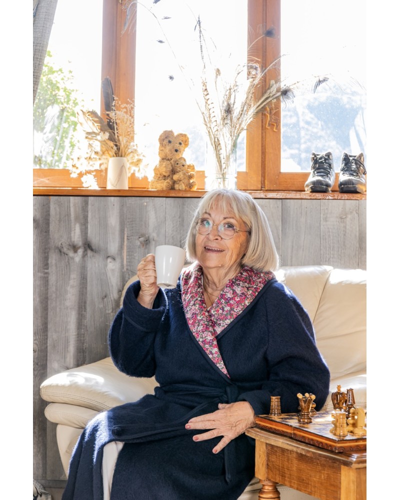 ROBE DE CHAMBRE CROISÉ COL CHÂLE LIBERTY VDA : CHALEUR ET CONFORT EN LAINAGE DES PYRÉNÉES. IDÉALE POUR VOS MOMENTS COCOONING À LA MAISON